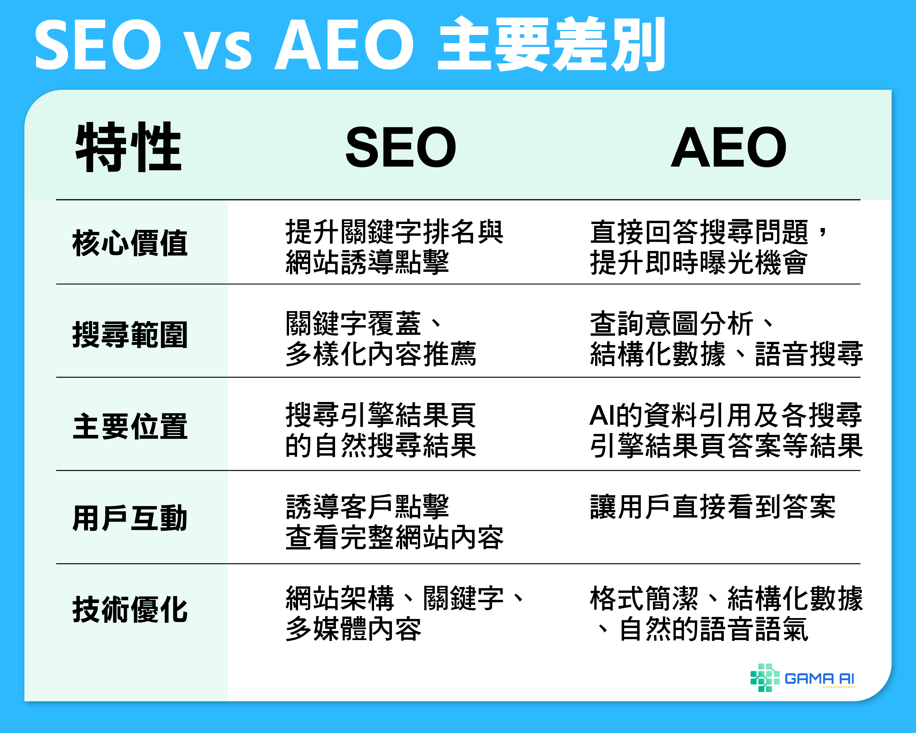 AEO 是一種優化策略,旨在讓網站內容更容易被搜尋引擎或 AI 系統(如 ChatGPT)直接提取並呈現在搜尋結果中,提供使用者快速、精確的答案。